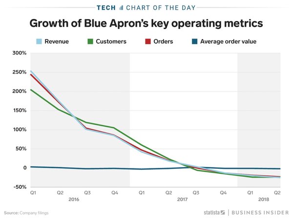 thoughts of food Blue Apron’s steady decline continues. August 5, 2018 0 Comments Not much content other than the graph below but sharing link anyway. | learn more Blue Apron
